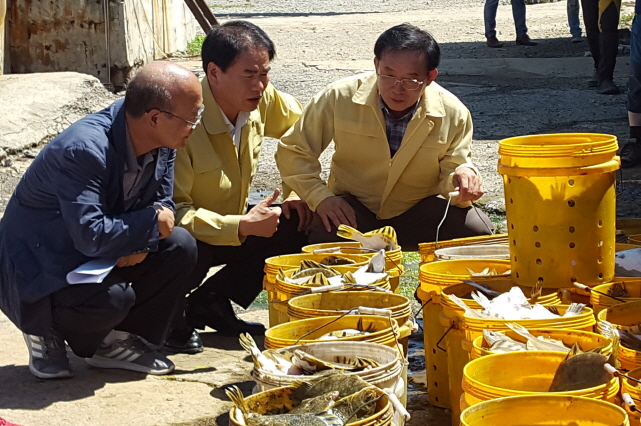 (경북=국제뉴스) 김용구 기자 = 경상북도는 6일 폭염에 따른 동해안 고수온 발생 지역을 방문해 피해 현황과 대책을 보고 받고, 피해어가를 격려하는 등 어업인 애로사항과 고수온 대책 방안 등을 논의했다.