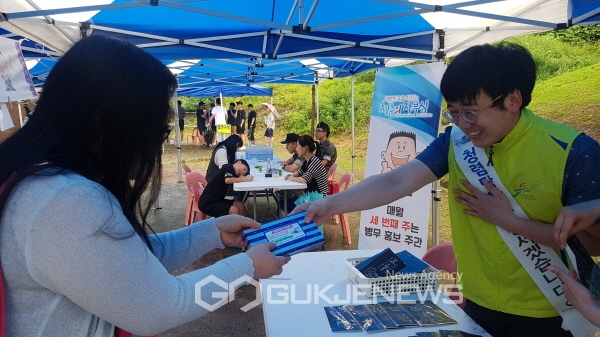 (대구=국제뉴스) 백운용 기자 = 대구경북지방병무청은 14일 제50보병사단 입영문화제 현장을 찾아 '반칙과 특권이 없는 청렴 병무청', '달라진 병역제도' 등 다양한 병역정책 알리기에 나섰다