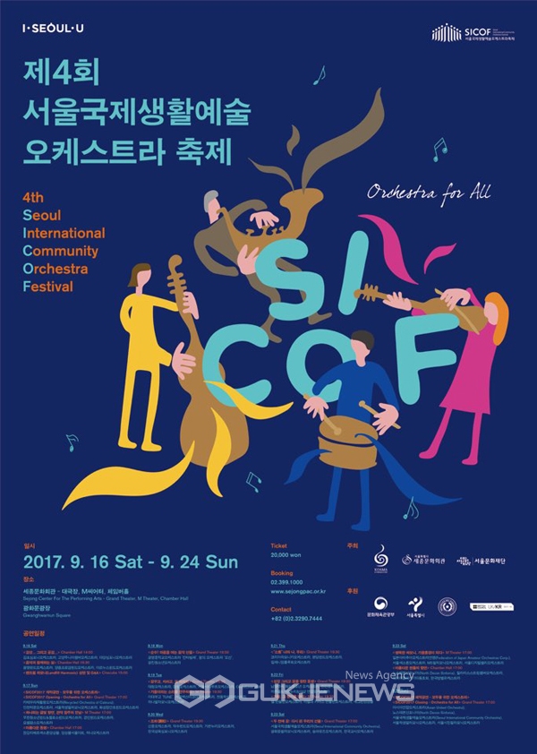 (서울=국제뉴스) 하성인 기자 = 전 세계 70개 단체, 4천4백여명의 아마추어 음악인이 함께 만드는 ‘모두를 위한오케스트라’ <제4회 서울국제생활예술오케스트라축제(4th Seoul International Community Orchestra Festival)>가 9월 16일부터 24일까지 세종문화회관 3개 공연장과 광화문광장에서 열린다.