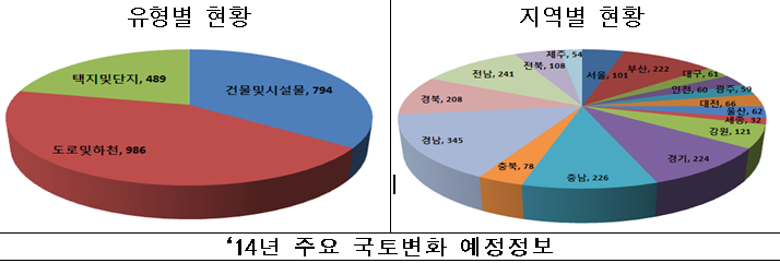 변동 유형별로 살펴보면 도로․하천 공사가 986건으로 가장 많고, 지역적으로는 경남지역이 345건으로 가장 많은 것으로 조사됐다.