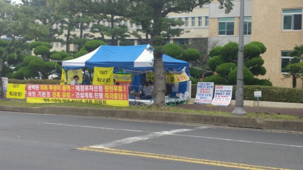 이들은 "이제 원희룡 도정이 답할 때"이라며 "즉각 단식투쟁과 천막농성을 풀 수 있도록 조처해야 한다. 사람부터 살리고 봐야 할 일이다. 도지사가 직접 천막(단식)농성장을 방문해 겸허하게 지역주민의 민원을 듣고 설득해야 한다. 꼼수부리기식 행정절차만 고집하지 말고 투명성과 민주성을 담보할 수 있는 방안에 대해 논의해야 한다"고 촉구했다.
