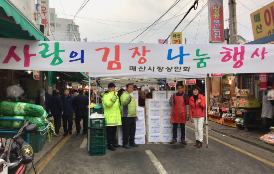 이날 행사 중 가장 돋보였던 것은 매산시장 상인회에서 준비한 '사랑의 김장 나눔'이었다. 이혜련 시의원과 시장 상인, 지나가던 시민까지 다함께 동참해 비가 오는 궂은 날씨에도 불구하고 준비된 200포기의 이웃과 나눌 김장 김치를 담갔다