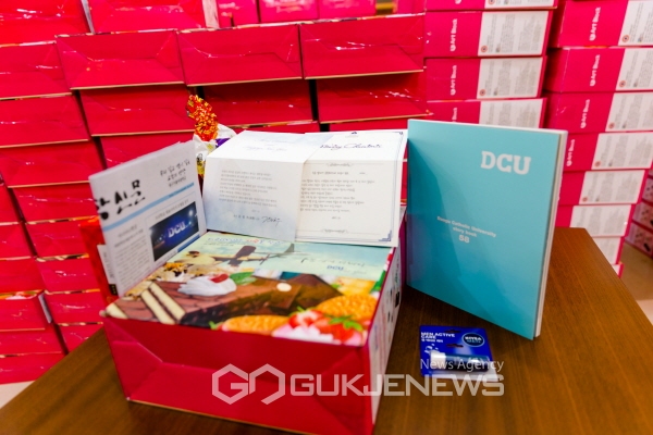 대구가톨릭대는 군 입대 휴학생 중 주소가 확인된 550명에게 김정우 총장과 학과(부)장의 격려카드, 학교 소식지(DCU 스토리북)와 학보(대학신문), 과자박스, 립글로스를 담은 위문상자를 보냈다고 21일 밝혔다.