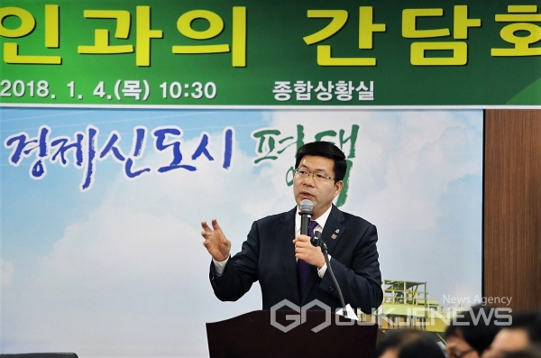 (평택=국제뉴스) 박진영 기자 = 평택시는 지난 4일 시청 종합상황실에서 신년 기자간담회를 통해 2018년 시정 운영방향을 밝혔다.