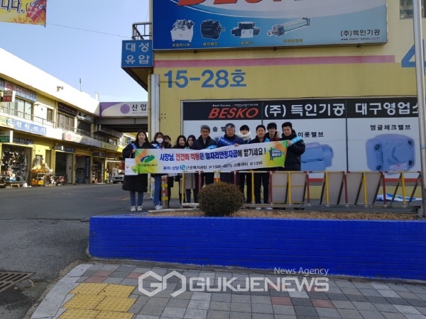 이날 캠페인에는 북구청과 근로복지공단 직원 18명이 참석하였으며, 대구종합유통단지 내에서 기업체를 운영하는 사업주를 대상으로 홍보 리플릿을 배부하고 신청방법을 안내했다.