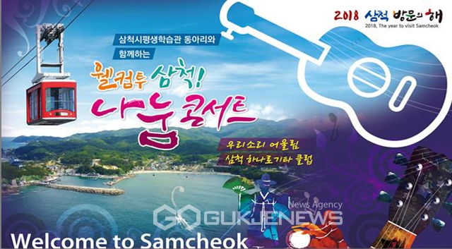 (삼척=국제뉴스) 김현주 기자 = 삼척시는 2018삼척방문의 해를 맞아 관광객들에게 볼거리와 낭만적인 추억을 제공하고자 삼척시평생학습관 우수동아리들과 웰컴투 삼척! 나눔콘서트를 추진한다.