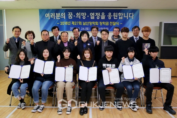 (대구=국제뉴스) 백운용 기자 = 대구 중구 남산장학회(이사장 김병호)는 오후 2시 중구남산3동행정복지센터에서 관내 모범청소년 10명에게 장학금 650만원을 전달하였다고 27일 밝혔다.