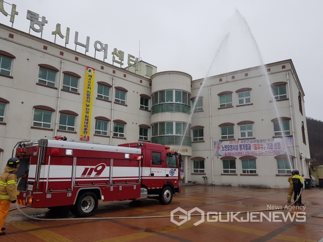 이날 훈련에는 풍각면 봉기리에 위치한 효사랑 시니어니어센터에서 직원과 환자, 청도 119안전센터 관계자, 풍각면 의용소방방대원, 공무원 및 주민 등 200여 명이 참여했다.