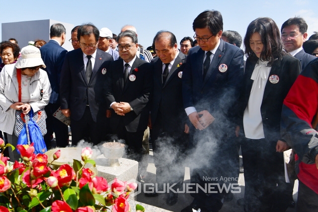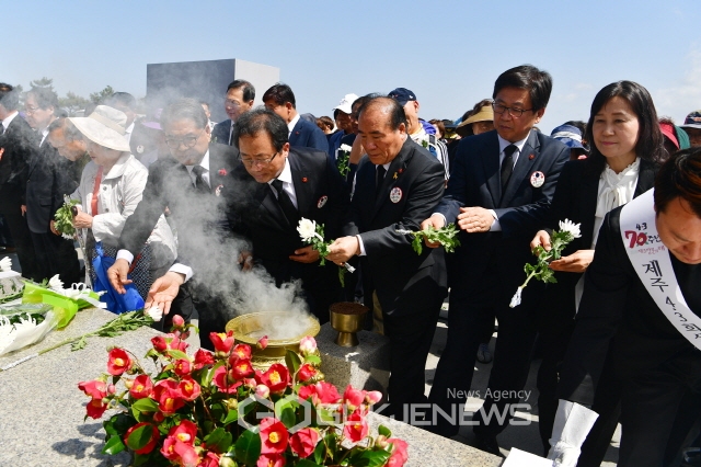 (부산=국제뉴스) 김옥빈 기자 = 이재정 경기도교육감(현 전국 시도교육감협의회장)을 비롯해 장휘국 광주시교육감, 김석준 부산시교육감, 최교진 세종특별자치시교육감, 류혜숙 울산시교육감 권한대행(부교육감)은 3일 오전 10시 제주4.3평화공원에서 봉행된 '제70주년 4.3희생자 추념식'에 참석했다.