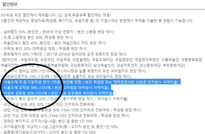 하지만 예술의전당과 국립오페라단 어디에도 할인의 이유는 찾아볼 수 없다. 국립오페라단은 국가의 세금으로 운영하는 예술단체인데 서울시에만 특혜를 주는 것에 대해 문체부가 해명해야한다.(아래 2개의 캡쳐사진 참조)