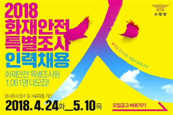(대구=국제뉴스) 백운용 기자 = 대구소방안전본부는 제천․밀양 화재사고를 계기로 화재안전관리시스템을 근본적으로 개선하기 위해 오는 7월부터 내년 12월까지 진행될 ‘화재안전특별조사’에 참여할 기간제 근로자를 모집한다.