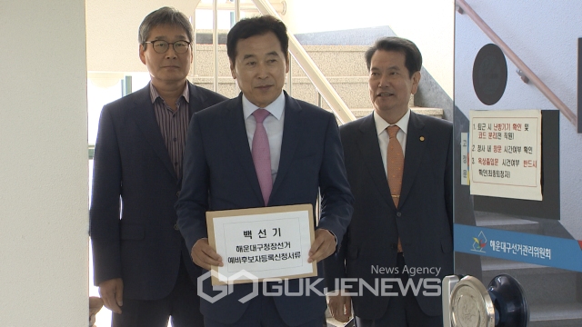 이날 백선기 전 해운대구청장이 자유한국당 예비후보로 등록하면서 해운대구청장선거는 백 후보를 포함해 더불어민주당의 홍순헌 후보와 무소속의 차형규 후보 등 3명이 각축을 벌이게 됐다.