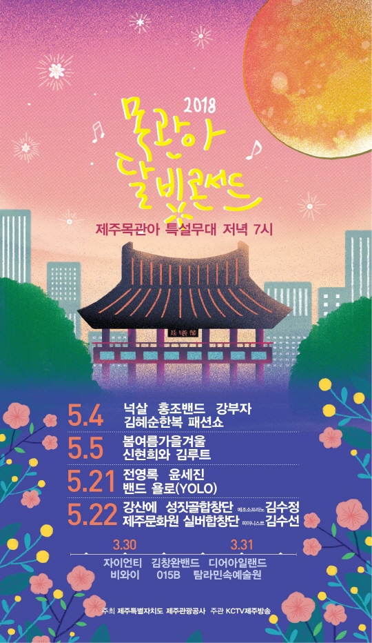 한편 5월 21일은 '원조오빠' 가수 전영록, 제주 출신이자 싱어송라이터인 가수 윤세진, 밴드 욜로(YOLO)가 5월 22일은 천상의 목소리로 빛나는 '성짓골합창단'과 '메조소프라노 김수정', '제주문화원 실버합창단'과 피아니스트 김수선', 최근 2018 남북평화협력기원 평양공연을 빛낸 가수 강산에가 무대를 채울 예정이다.