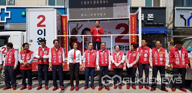 자유한국당 이완섭 서산시장 후보와 도의원, 시의원 후보들은 이날 오전 10시부터 동부시장 입구 시장약국 앞에서 출정식을 가졌다.