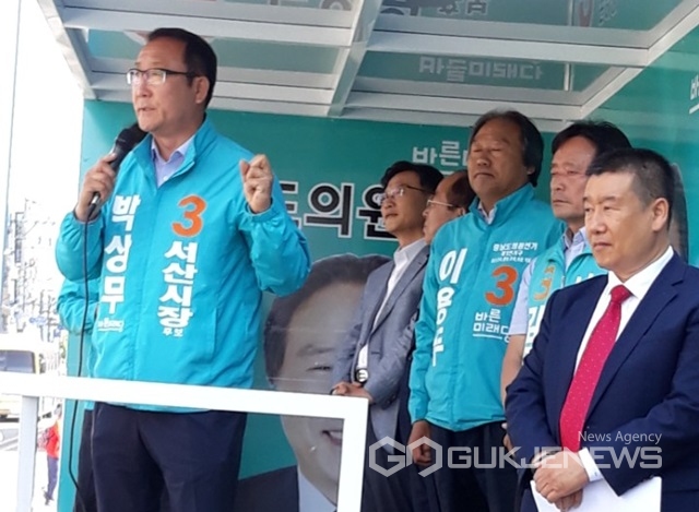 바른미래당 박상무 서산시장 후보와 도의원, 시의원 후보자들도 이날 오전 9시부터 공용버스터미널 앞에서 출정식을 가졌다.