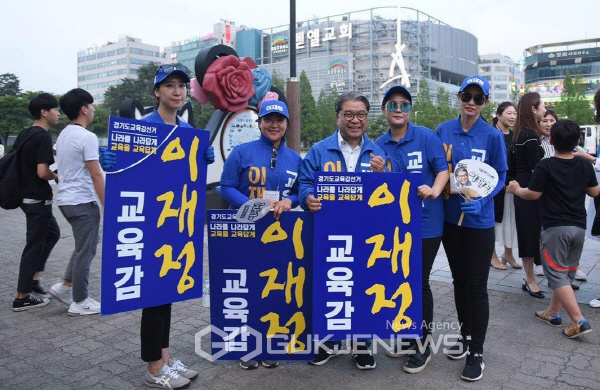 (고양=국제뉴스) 허일현 기자 = 이재정 경기도교육감 후보가 지난 8일 오후 경기 고양시 라페스타 거리에서 유세를 가졌다.