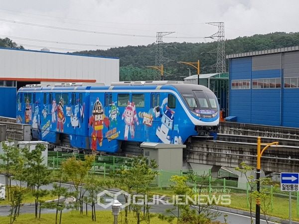 (대구=국제뉴스) 백운용 기자 = 대구도시철도공사(사장 홍승활)는 3호선 어린이 테마열차인 로보카폴리 캐릭터 열차의 디자인을 새롭게 래핑하여 6월 11일(월)부터 운행한다고 밝혔다.