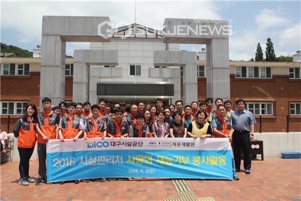(대구=국제뉴스) 백운용 기자 = 대구시설공단 직원 일동은 지난 9일(토)에 동구 팔공산로에 위치한 지적장애인 거주시설 자유재활원에서 재능기부 봉사활동을 펼쳤다.