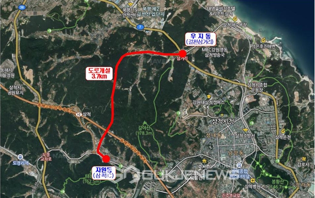(삼척=국제뉴스) 김현주 기자 = 삼척시는 자원동(동해고속도로 삼척IC)에서 우지동(국도7호선 갈천삼거리)을 연결하는 연장 3.7km의 도로개설 사업을 추진한다.