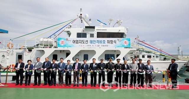 (태안=국제뉴스) 최병민 기자 = 충남 태안군이 건조한 어업지도선 ‘태안격비호’가 취항식을 갖고 서해의 수산자원보호와 격렬비열도 수호에 적극 앞장선다.