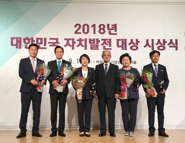 (제주=국제뉴스) 고병수 기자 = 제주특별자치도의회 고용호 의원(민주당. 서귀 성산읍)은 한국자치발전연구원이 주최하는 '2018년 대한민국 자치발전 대상'을 수상했다.