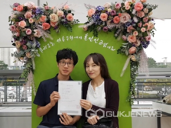 (용인=국제뉴스) 강성문 기자 = 용인시 기흥구는 오는 10월부터 청사 1층 민원실에 혼인신고를 위해 방문하는 부부에게 새 출발의 기쁨을 사진으로 간직하도록 '혼인신고 기념 포토존'을 운영한다.